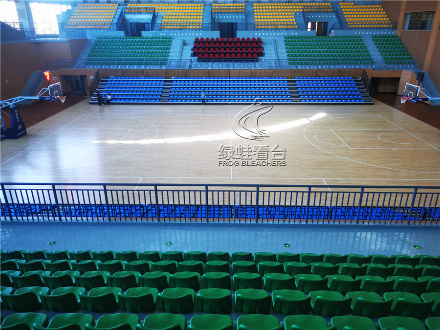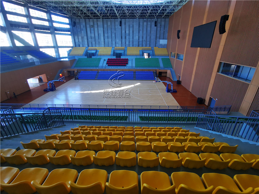 綠蛙看臺承接的正是該籃球場館的看臺座椅項目,共安裝搭建固定座椅2271個, 中靠背吹塑椅電動伸縮看臺784個, 低靠背吹塑椅主席臺椅50座,安裝的電動伸縮看臺可針對情況隨時調(diào)整,方便賽事的開展與日常場館管理,實在是方便。座椅通過顏色分區(qū),醒目且富有運動活力的氣息,目前看臺座椅設(shè)備已全部完成安裝調(diào)試,可隨時投入使用。