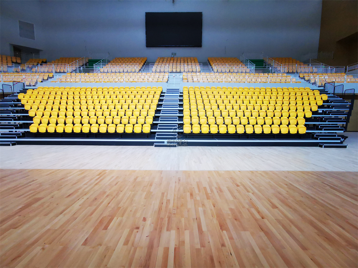 體育組團由A、B、C三個館組成,其中A館為體育館,一樓為比賽場地,四周有伸縮活動看臺2010座,二樓為固定坐席2116座和主席臺28座,整體可容納4000多人。座椅全部采用氣輔式注塑翻板座椅,整體高檔大氣,且翻折后易于通行。伸縮活動看臺采用后置式安裝方式與體育館整體氣質(zhì)比較符合。