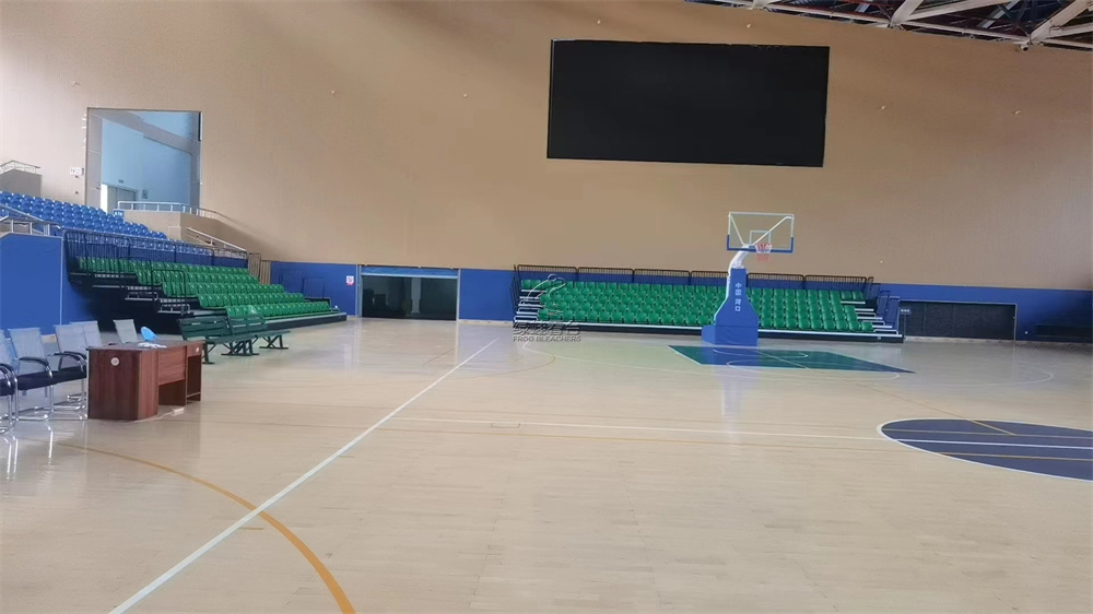 綠蛙看臺承接了其中的看臺座椅的設(shè)計及安裝內(nèi)容,通過固定看臺座椅與伸縮座椅的搭配組合,將場地的利用率最大化,增加了可容納觀眾數(shù)量,同時兼顧觀眾的觀賽體驗(yàn)。