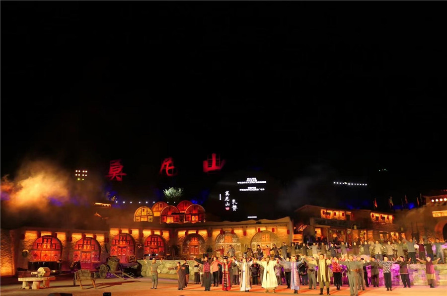 2024年景區(qū)策劃大型實(shí)景劇《莫尼山禮贊》,該劇主要展示呼和浩特市(舊稱歸化城和歸綏)從明代阿拉坦汗建城到清代康熙年間商道興起,先有十萬工匠聚于陰山之南,后有二十萬峰駱駝穿梭于漠南漠北。每年將數(shù)以百萬噸的南方茶葉運(yùn)于歐洲各國,并將北地邊境的百萬羊馬販養(yǎng)至京畿重地。該劇特點(diǎn)為時(shí)間跨度大,情節(jié)豐富故事性強(qiáng),多重表演形式感人至深,數(shù)百項(xiàng)非遺技藝融于期間。景區(qū)將原“游牧生活體驗(yàn)區(qū)”重新設(shè)計(jì)規(guī)劃,搭建2500人固定看臺,由高處俯瞰自然地貌,駝隊(duì)于山脊溝壑中蜿蜒前行,吊橋上男女情侶深情呼喚道別,傳統(tǒng)蒙古包中舉行蒙漢文化結(jié)合的特色婚禮。