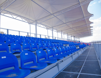 該看臺項(xiàng)目用于二連浩特旅游局舉辦的旅游節(jié)開幕式看臺??磁_采用可拆卸式結(jié)構(gòu),座椅采用高靠背中空吹塑椅,護(hù)欄采用綠蛙新型網(wǎng)狀護(hù)欄。二連浩特該季節(jié)藍(lán)天比較多,太陽照射紫外線強(qiáng),專門為看臺制作了張拉膜頂棚,安全、實(shí)用、美觀大方。