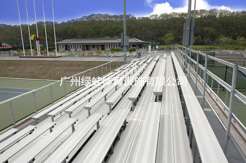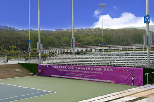 中國網球學院網球場采用鋁制看臺,鋁制看臺在國外被大量的應用,原因在于看臺造價不高,耐用實用??磁_基礎架采用鋼結構鍍鋅,座板踏板采用鋁合金型材,長期置于室外不會因生銹對看臺造成損傷。