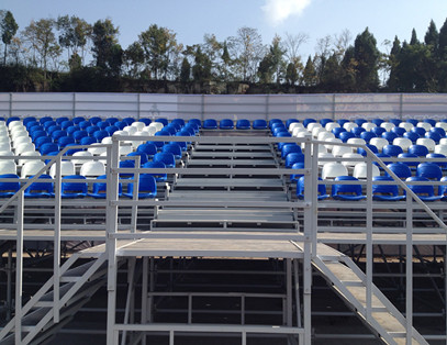 該看臺(tái)屬斜梁式拼裝看臺(tái),整體結(jié)構(gòu)采用標(biāo)準(zhǔn)件、模塊化設(shè)計(jì),看臺(tái)的各種部件,如支架,踏板,側(cè)板,護(hù)欄,座椅等,皆可隨意 搭配組裝,可根據(jù)場(chǎng)地及觀眾席位需要進(jìn)行各種層高、位數(shù)的拼裝組合。具有結(jié)構(gòu)簡(jiǎn)單,搭建及拆卸方便,便于運(yùn)輸及儲(chǔ)存等特點(diǎn)。