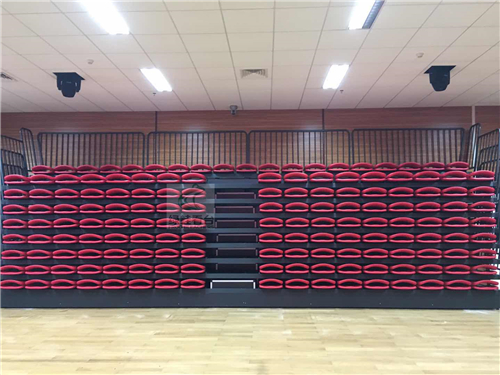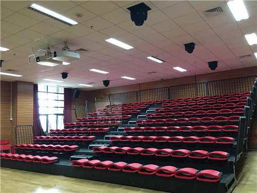 深圳市職業(yè)病防治院伸縮看臺采用的是綠蛙體育看臺中的前置式中空吹塑折疊翻板椅款式,于11月初完工。
