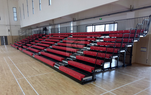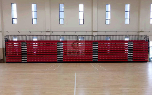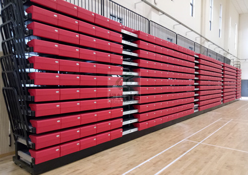 新校區(qū)的體育館也是獨(dú)具一格,綠蛙電動伸縮看臺起到了錦上添花的作用??磁_最高層為12層,分為左右兩邊,共計890余位,采用的是中空吹塑平靠背座椅,完美無縫對接,色彩分明,熠熠生輝。
