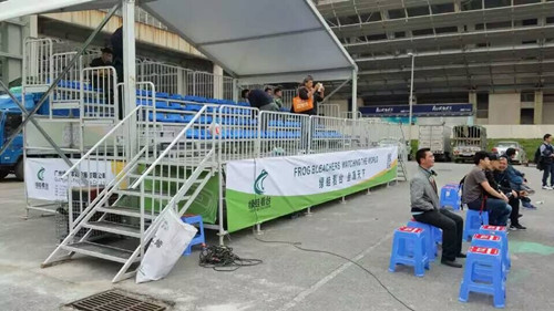 第十四屆廣州國際專業(yè)燈光、音響展覽會于2016年2月29 – 3月3日在廣交會展館A區(qū)成功舉行,期間綠蛙看臺在館內(nèi)館外分別展出了伸縮看臺、鋁制看臺、可拆卸拼裝看臺。來自國內(nèi)外的舞臺燈光音響行業(yè)的朋友紛至沓來,對綠蛙看臺的產(chǎn)品表示高度肯定。室外音響演示場地,綠蛙的可拆卸拼裝看臺發(fā)揮中流砥柱的作用,主辦方對綠蛙公司提供的可拆卸拼裝看臺表示高度認(rèn)可。
