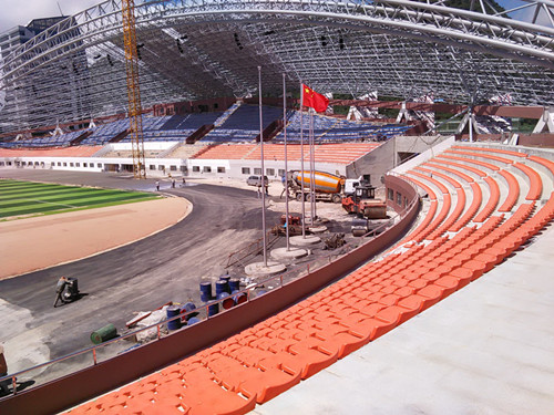 看臺(tái)作為收尾階段的工作,截止到8月8日綠蛙公司已經(jīng)將體育場(chǎng)、體育館、游泳館看臺(tái)座椅全部安裝完畢,為整體項(xiàng)目的驗(yàn)收添上重重的一筆!