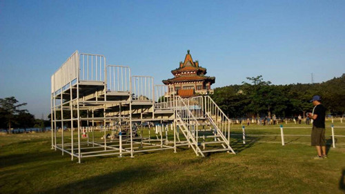 順德順峰山公園內(nèi),綠蛙看臺(tái)參與中法文化節(jié)活動(dòng),作為龍形球場(chǎng)的場(chǎng)邊看臺(tái),為觀眾提供觀賞的平臺(tái)。
