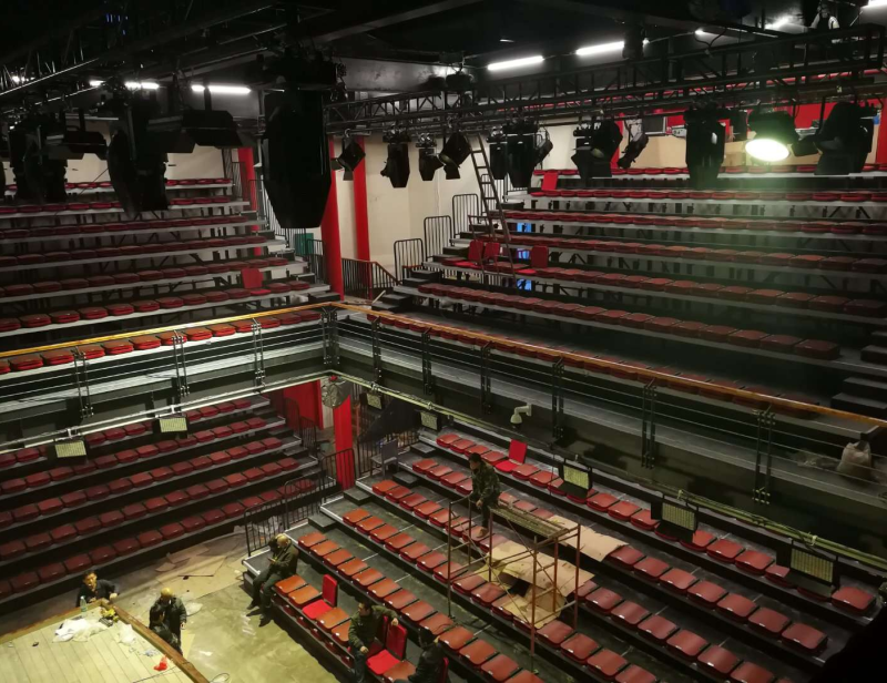 觀眾席采用高靠背軟包座椅手動(dòng)伸縮看臺(tái),現(xiàn)場(chǎng)能容納500名觀眾。為力求節(jié)目最好的觀賞效果,綠蛙看臺(tái)根據(jù)整個(gè)場(chǎng)館的舞臺(tái)及空間位置特點(diǎn),對(duì)上下樓的每組看臺(tái)起高及錯(cuò)層高均為量身定做。服務(wù)好客戶,是綠蛙看臺(tái)的本職所在。