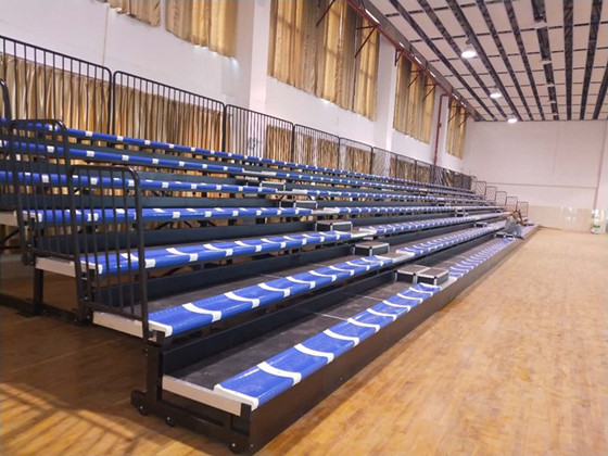 這些座位色彩鮮艷,不僅給學(xué)校體育館增添了動(dòng)感的氣氛。且多年不易脫色,室內(nèi)外環(huán)境均可使用。高級(jí)底部結(jié)構(gòu)設(shè)計(jì),在有效增加負(fù)載、降低系統(tǒng)自重的情況下,科學(xué)地解決了移動(dòng)平臺(tái)過(guò)大、運(yùn)行多年容易發(fā)生系統(tǒng)變形等問題。