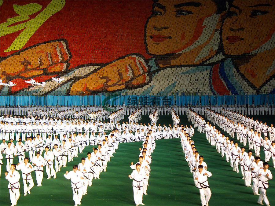這一類顏色布局的方法就是以某一種顏色為背景,在此基礎(chǔ)上,通過顏色的變動形成一些圖案。好比矩陣式電視,每一個座椅就是一個顯示點。圖案想設(shè)計越復(fù)雜,就要求畫面越大矩陣越大,看臺座椅的規(guī)模也要求越大。簡單的圖案是字母,相對復(fù)雜一點的有中文漢字,最復(fù)雜的就是圖形。最典型的的代表有朝鮮的平壤體育場。