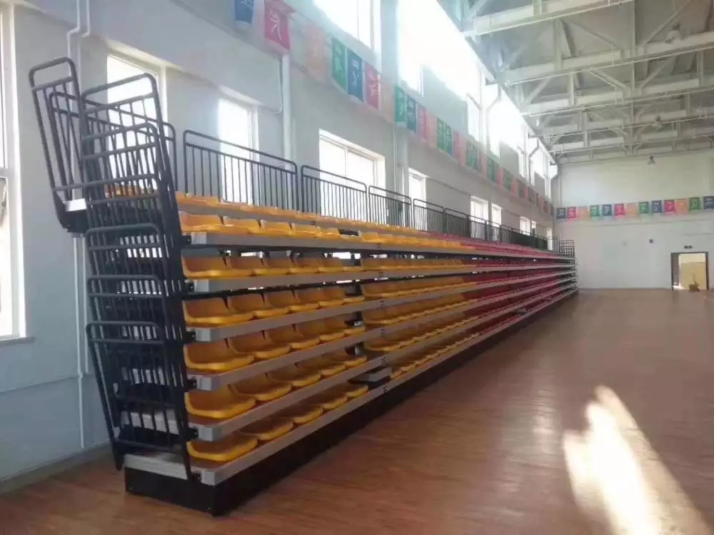 伸縮看臺座椅作為一種靈活多變的觀賽設(shè)施,廣泛應(yīng)用于體育館、劇場等場所,能夠根據(jù)活動需求調(diào)整觀眾席的數(shù)量和位置。其收納過程體現(xiàn)了設(shè)計上的精巧與實用性,以下是對伸縮看臺座椅如何實現(xiàn)收納的詳細(xì)解釋和說明。