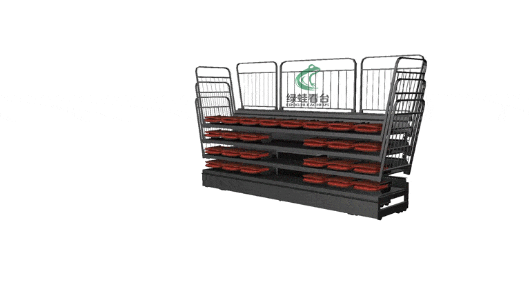 伸縮看臺又稱活動看臺,伸縮看臺拉伸成臺階形時,翻起座椅供觀眾舒適地欣賞節(jié)目,收縮成匣子狀時則占用很少的空間,讓出場地以安排他用。伸縮看臺可充分利用室內(nèi)的有限面積,滿足不同功能情況下的多座位要求。