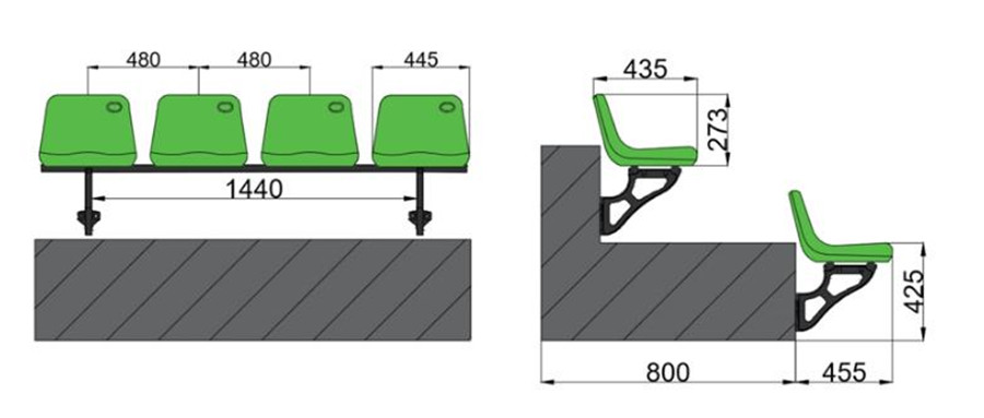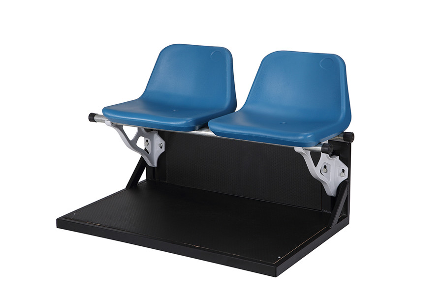 座椅采用站立式安裝方式的座椅,椅面距地面高度約為420mm左右,座椅支架選用優(yōu)質(zhì)壓鑄鋁支架連接鍍鋅圓管。壓鑄鋁支架采用靜電噴塑處理。支架采用M10×80的擊芯膨脹螺栓與看臺水泥壁面相連,每個膨脹螺栓可抗力100kg以上。鍍鋅圓管外徑不少于φ32mm,厚度不少于2mm。圓管兩端采用橡膠塞頭封口。緊固件、座椅連接件采用鍍鋅處理。