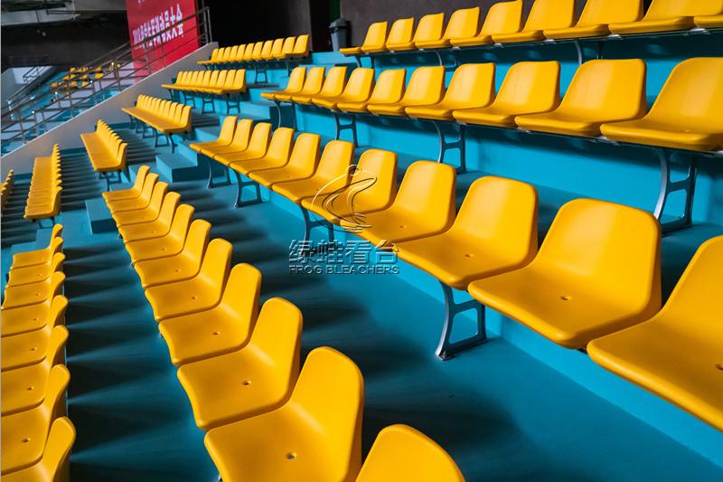 固定看臺座椅(綠蛙牌)可分為平裝、側裝、立裝等不同安裝方式的座椅,也可分為一體椅和翻板椅,根據(jù)場地的不同需求而定。