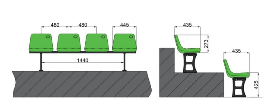 座椅采用站立式安裝方式的座椅,椅面距地面高度約為420mm左右,座椅支架選用優(yōu)質壓鑄鋁支架連接鍍鋅圓管。壓鑄鋁支架采用靜電噴塑處理。支架采用M10×80的擊芯膨脹螺栓與看臺水泥壁面相連,每個膨脹螺栓可抗力100kg以上。鍍鋅圓管外徑不少于φ32mm,厚度不少于2mm。圓管兩端采用橡膠塞頭封口。緊固件、座椅連接件采用鍍鋅處理。