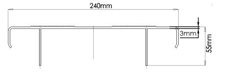 座板采用單塊鋁合金板。鋁合金板為擠壓鋁型材,鋁型材截面尺寸=240mm×55mm×3mm,板材厚度為3mm。擠壓鋁型材強(qiáng)度標(biāo)準(zhǔn)達(dá)到6063-T5級(jí)別以上,表面經(jīng)過(guò)氧化處理,上有防滑紋, 10年以上不變色、不氧化,具有良好的環(huán)保性;