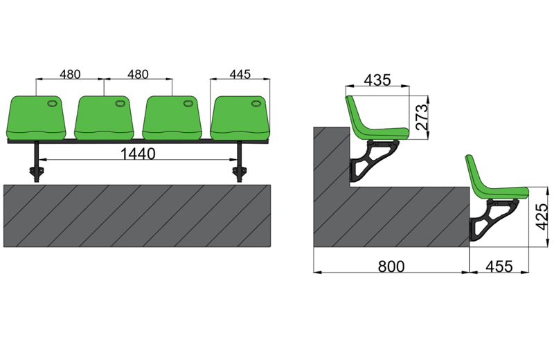 座椅尺寸:寬:445mm 高:273mm 深:435mm